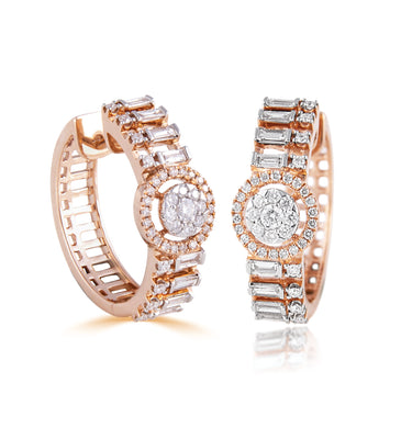 The Radiant Cascade Diamond Earrings are a luxurious design adorned with 1.09 carats of diamonds in GH/SI quality. Crafted in 14KT gold weighing 7.52 grams, these earrings are a perfect choice for celebrating life’s grand moments.