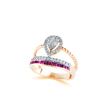 The Ruby Halo Diamond Ring is a timeless expression of elegance and vibrant color. Featuring a radiant halo design with 0.39 carats of dazzling diamonds in GH/SI quality, encircled by vivid rubies, this ring is crafted in 14KT gold with a gross weight of 3.38 grams. The intricate design and bold colors make it a stunning statement piece, perfect for celebrating life's special moments. This exquisite ring embodies passion, beauty, and sophistication.
